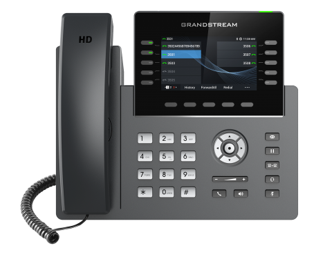 The Grandstream GRP2615 is a desk and wall mountable audio phone with 10 programmable buttons. The GRP2615 includes Wifi, Bluetooth, and expansion port for a 20-button side car. Key differences between the GRP and GXP series is WiFi, sleeker look, and upgraded firmware.